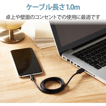 USB‐A端子を搭載したPC及び充電器とLightningコネクタを搭載したiPhone、iPad、iPodを接続し、充電・データ転送が可能です。