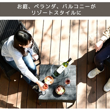 ラタン調の編み込みデザインのガーデンファニチャー3点セット。樹脂製なので、汚れても水洗いができてお手入れも簡単。細部まで丁寧に編みこまれた人工ラタンは触り心地も抜群。お庭、ベランダ、バルコニーがリゾートスタイルのおしゃれな雰囲気に。