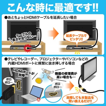 HDMIオス・HDMIメス(HDMItypeAオス/typeAメス)ショートケーブル 0.2m/0.5m(ケーブル長はSR-SR間)。