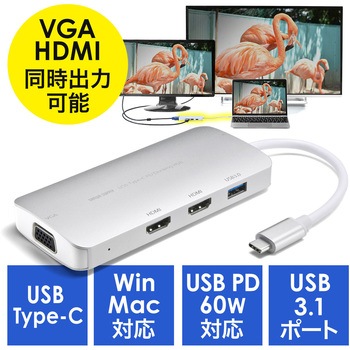 TYPE-Cポートに対応したHDMIポート2ポートVGAポート付USBハブです。