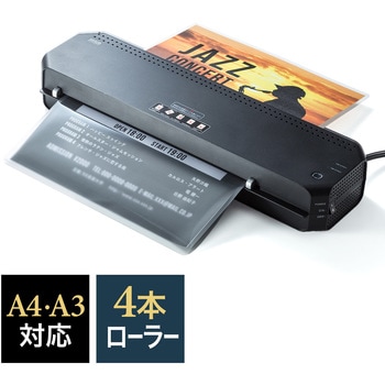約90秒の急速ウォームアップで待たずに作業できます。4本ローラータイプです。スイッチを入れるだけの簡単操作です。フィルムが詰まっても安心なリリーススイッチ付きです。A3サイズまで対応しています。