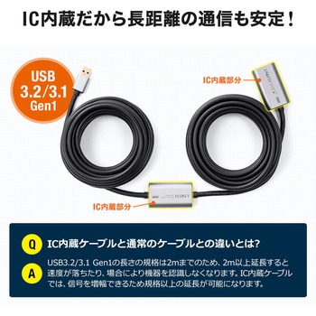 USB2.0の約10倍(5Gbps)の転送速度に対応したUSB3.1(3.0)アクティブリピーターケーブルです。