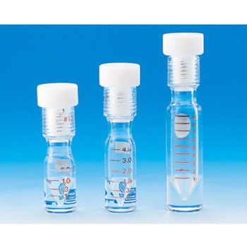 従来のミニバイアルは外ねじ式で低沸点物の保存や試料を加熱した時の気化物の蒸発を防ぐことが難しく、試料作成が困難でした。本バイアルはねじ部に♯11のエーススレッドを取付けることにより、内圧が増大しても内ねじ式のPTFE製耐圧プラグがしっかりと保護し、気化物の蒸発を防止しますので、低沸点物の保存やサンプルの加熱反応に適しています。