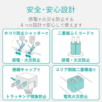 コンセントとスイッチに角度がついているので大きなアダプタを差してもコンセントに干渉しないのが使いやすい。今まで使用していたスイッチ付き延長コードはスイッチが光らなくなるなど壊れることが多かった。まだ、使い始めたばかりなので、耐久性については今後経過を見たいと思う。