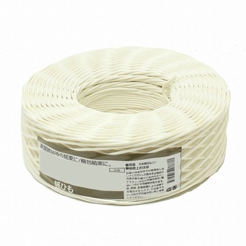 牛乳パックなどから再生された無漂白の紙製の丸いひもです。強度があり簡単に結びやすい。古紙回収にも利用できるリサイクル可能なひもです