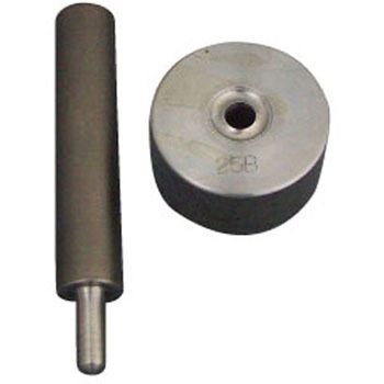 ハトメを取り付けるための打ち具セットです。打ち台にハトメを通す穴をあけた布を置きハトメをセットし、打ち棒を金づちなどで叩くとハトメを留めることが来ます。