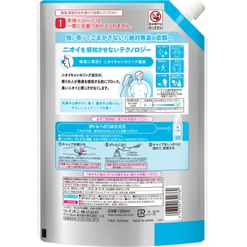 目指したのは、「絶対無臭」。ニオイを感知させない日本初テクノロジー(=きゅう覚に着目したニオイキャンセリング機能)を搭載した次世代の柔軟剤。香りは、乾くと残らないピュアソープの香り。だから、一日中、衣類のニオイや香りによる心配事なく過ごせる。