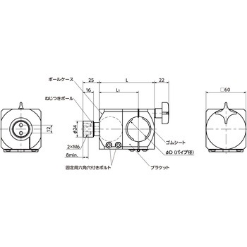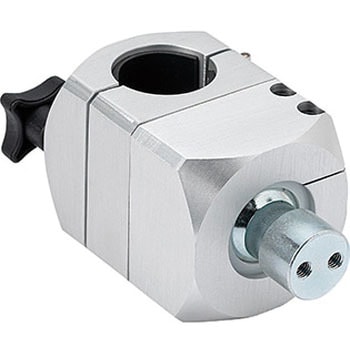 ボールを利用した、位置決め部品。ボール先端のねじにワークを取りつけて使用してください。360°どの方向にも、ねじつきボールを±15°まで傾けることができます。固定用六角穴付きボルトを締めつけることで、調整後の角度を確実に保持します。丸パイプに取りつけることができます。