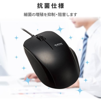 マウス 有線 抗菌 ブルーLED 3ボタン Mサイズ ケーブル長1m