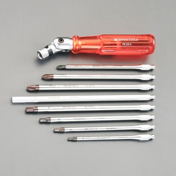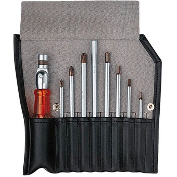 ロールアップケース付き。ジョイント部は可到式で、早回しの時はストレートで、強く締めたい時は90°に曲げて使用することができます。ブリップは木やコットンから生まれた自然素材を含むCAB(セルロース・アセト・ブチレイト)で作られています。グリップは肌に優しく、握るのに理想的で、耐衝撃性に優れまた、手入れも簡単です。
