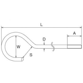 M6x 250mm ねじ付ロングフック(ステンレス製)