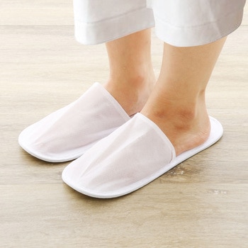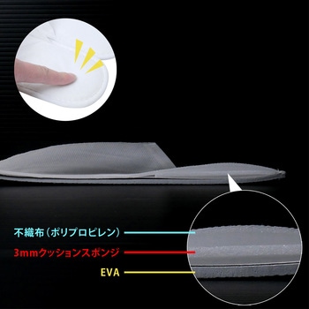 介護施設や引っ越し作業・内装業などで使用する使い捨てのスリッパです。保管に便利な1足ずつの個包装タイプで、1回使い切りのため衛生的です。従来のスリッパより甲高に設計しましたので、脱ぎ履きしやすくゆったりしています。かかとにクッション入り。裏面はエンボス加工で滑り止め効果をアップしました。
