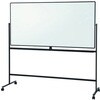プラスの脚付ホワイトボード「VSシリーズ」のスチール両面無地タイプ。スチール板面タイプはVOC抑制に配慮したホワイトボードです。板面はプラス独自の水性塗装鋼板で平滑性と硬度を高める工夫を施し、消去性を向上させました。シンプルですっかりとしたフレームでボードは回転式。センターストッパーでワンタッチ操作、しっかり固定できます。マグネット使用可、粉受け付きです。