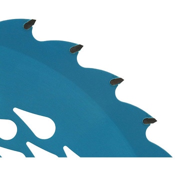 従来チップソーと比較しバッテリーが長持ち致します。4つの特徴で作業時の空気の抵抗を大幅軽減します。独自の特殊台金形状(穴あけ構造)です。超薄型超硬チップを採用しています。特殊表面加工(電着塗装)を施しています。