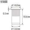 エビナットはナットとリベットの機能を兼ね備えたブラインドファスナーです。ローレット部が母材に食いついて安定した強度を得られ、軟質母材に適しています。胴部に入ったローレットがかしめリブ形成のガイドとなり、母材をガッチリグリップすることで供回りを防ぎます。フランジ(ツバ)が小さく薄いためナットの取り付け部(フランジ)の母材表面からの出っ張りが小さく、目立ちにくく設置できます。必要な時に必要な数だけお求めいただける少量パック入りです。丈夫な樹脂ケース入りで保管に便利です。