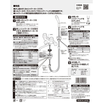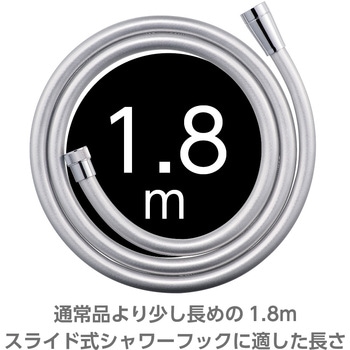 少し長めの1.8mシャワーホースです。スライド式シャワーフックに適した長さです。 シルバーカラーでメッキタイプのシャワーヘッドと相性抜群です。 シャワーヘッド取付金具は回転式のためホースがねじれません。 水栓側アダプター(5個),シャワーヘッド側アダプター(2個)付属。※一部別売りアダプターが必要なメーカーがございます。 商品画像をご確認ください。ホースは三層式を採用しており補強糸が見えない優れたデザインとなります。
