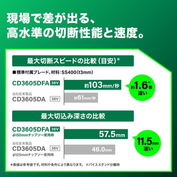 36Vのパワー×150mmチップソーでパワフルな切断が可能!