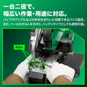 スタンド付きで安定してパイプ等の切断が可能!ベース部を外してハンディタイプとしても使用できるので1台2役で作業用途倍増