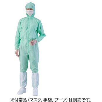 衿部をマジックテープから、脱落防止樹脂ホック止め仕様にした異物混入対策ツナギ服です。異物混入対策のため、ペン差し・名札・腕章用ループを取り除きました。袖部はスリム形状でダブつきを防ぎます。センターファスナー、ウエストゴム絞り仕様です。