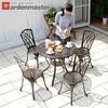 アイアン調ガーデンテーブル&チェアセット。アルミ製パラソルホール付き。