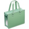 A4ファイルボックスがなくても自立します。収納物表示用のインデックス付き。耐荷重10kg。折りたためてかさばらない。テレワーク(在宅勤務)やオフィスで大活躍。肩掛けできる少し長めの持ち手で、女性の持ち運びに配慮しています。