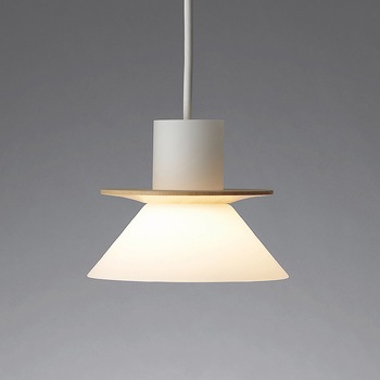 ゆるやかなカーブにしぼりこまれた木製のリングがセードごしの漏れあかりを柔らかく下方へ折りかえすセードデザイン。