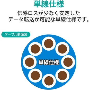 EU RoHS指令準拠(10物質)の「エンハンスド・カテゴリー5(Cat5e)」対応のLANケーブルです。伝導ロスが少なく安定したデータ転送が可能な単線仕様です。リレックス仕様なので、スムーズにケーブルを引き出すことが可能です。