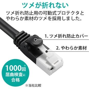 配線スッキリ!取り回しがしやすい”やわらかLANケーブル”。100BASE-TXだけでなく、1000BASE-Tでも転送ロスが少なく安定したデータ転送が可能な「エンハンスド・カテゴリー5」に準拠。爪が折れにくい爪折れ防止プロテクタ付き!