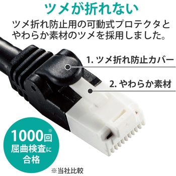 周波数帯域500MHzを保証する10ギガビット・イーサネットに対応した、Cat6A準拠LANケーブルのスタンダードタイプです。ツメ折れ防止プロテクターと屈曲に対する耐久性が高いコネクターを採用したダブル構造で、ツメが折れにくいLANケーブルです。 ※1000回の屈曲検査に合格(メーカー検証)■Cat6A準拠LANケーブルのスタンダードタイプです。■ツメ折れによるケーブルの脱落を防止し、長期にわたってしっかりとLANポートに固定することができます。 ■高速光通信に最適な、10ギガビット・イーサネットの「10GBASE-T」に対応しています。 ■Cat6の2倍である500MHzまでの高周波帯域まで対応しており、ノイズ干渉にも強く、高速で安定したネットワーク環境を実現します。 ■1000BASE-TX/1000BASE-T/100BASE-Tの環境で安定したデータ転送速度を確保します。 ■ケーブル内に十字介材を入れることで信号の干渉を防止し、安定したデータ転送を実現します。 ■単線に比べてやわらかく、取り回しがしやすいヨリ線仕様です。 ■EUの「RoHS指令(電気・電子機器に対する特定有害物質の使用制限)」に準拠(10物質)した、環境にやさしい製品です。 ■自社環境認定基準を1つ以上満たし、『THINK ECOLOGY』マークを表示した製品です。 ■環境保全に取り組み、製品の包装容器が紙・ダンボール・ポリ袋のみで構成されている製品です。