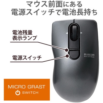 こまめに電源をON/OFFできるエコボタン付き! チルトホイール搭載の2.4GHz帯ワイヤレスBlueLEDマウス”MICRO GRAST SWITCH”。