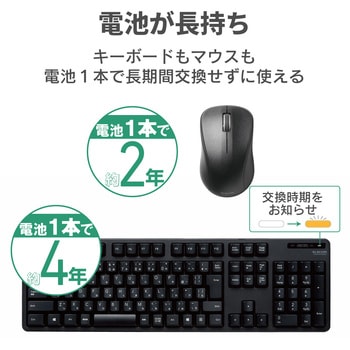 単3電池1本で使用でき、キーボードは約4年間、マウスは約2年間電池の交換をせずに使える電池長持ち設計です。(アルカリ乾電池使用時の動作時間目安。※メーカー環境でのテスト値であり保証値ではありません。)