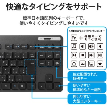 タイピングしやすい、JIS規格準拠の標準日本語配列のキーボードです。