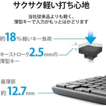 サクサクと軽い打ち心地を実現したキー設計を採用した薄型キーボードです。