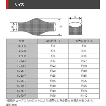 自己消化性を備えた編組チューブです。従来のFLチューブと異なりVW-1規格を取得しています。FLチューブと区別するため白糸をクロス掛けし、マークをつけています。UL File No:E347759伸縮性に富み裂傷や擦傷に強く、すべりが良いため、装着もいたってスムーズです。