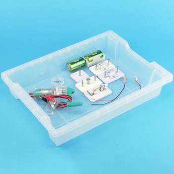 実験器具の収納に便利な収納ケース 半透明で内容物が見えます。単体でも使用でき、ふたなしでも前後互い違いに重ね置きできます。実験器具の配布・片付けに最適。