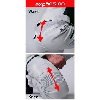 エクスパンションパーツ(蛇腹)+ストレッチ素材により、動作性能が格段にパワーアップしたストレスフリーウエア