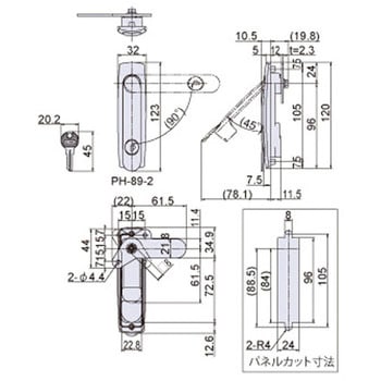安全性に優れた平面型スイングハンドルです。防水性能はIPX5相当です。左右兼用型です。PH-89-SUSと取り付けに互換性があります。ハンドルの閉時、開時の状態を保持する機能が付いています。止金が付属しています。防水パッキン(-2別売り)は、座金内側に入る構造になっているので、パッキン装着時でも目立ちません。