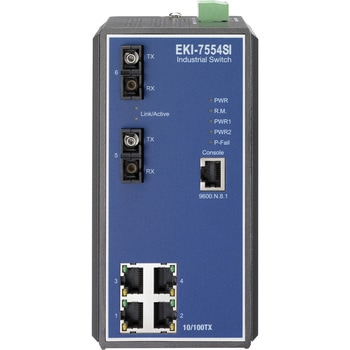 EKI-7554SIは、4つのファストイーサネットポートおよび2つのSCタイプ光ファイバポートに対応しております。産業用通信ネットワークの信頼性を高めるため、 冗長化を容易に実現できるX-Ring冗長化ネットワークプロトコルを装備しており、回復時間10ms以下を実現します。さらにこのスイッチはネットワークパフォーマンスを最適化する高度なネットワーク規格をサポート、 メンテナンスコストの削減、ネットワークの安全を確保します。
