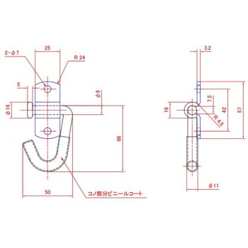 フックが180度回転式でトラック庫内に埋込取付が可能です。