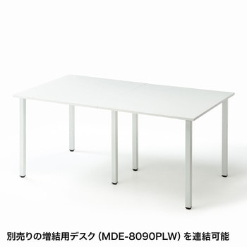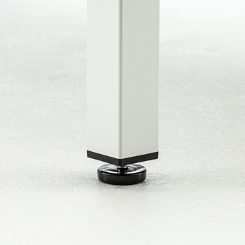オフィスを明るく彩るホワイト天板を採用したシンプルなデスクです。高さはH720mmです。奥行きは900mmあり、ミーティングデスクとして使用できます。増結デスクを連結することで、フリーアドレスデスクとして使用することができます。天板下周辺にはフレームなどが無いため、モニタアームやタップ、パーティションのクランプの取付が可能です。床を傷つけにくく、がたつきを防ぐアジャスター付きです。