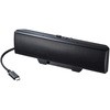 Type-Cケーブル1本で電源と音源を供給するUSBスピーカーなのでパソコン周りをキレイに接続できます。スタンド機能もあるクリップ構造になっており、ノートパソコンの画面上部に挟んで固定したり、モニタ下の空いたスペースに設置したりなど2WAYで使用できます。実用最大出力6W(3W+3W)で左右2つのスピーカーユニットと中央に低音域を強調するパッシブラジエーターを内蔵。コンパクトサイズながら臨場感のある音源を再現できます。ボリュームコントロールとパワーON・OFFスイッチが分かれているのでスイッチを入れればいつもの音量ですぐに音楽を楽しめます。マイク内蔵でWEB会議などで使用することもできます。