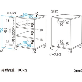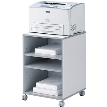 小型A3レーザープリンタに最適な省スペースプリンタスタンドです。背面には、ケーブル口が上下にあり、配線が容易です。中棚は、カートリッジや用紙サイズに合わせて高さを変更できます。