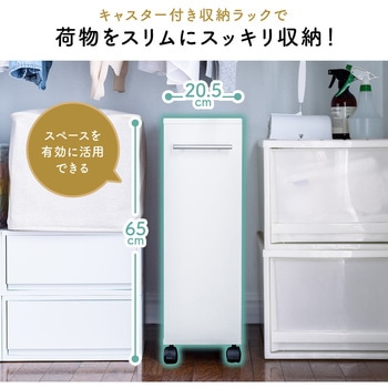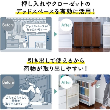 横幅約20cmのスリム設計で、押し入れやクローゼットの他にデスク周りやキッチン周りなどの隙間にも収納することができます。