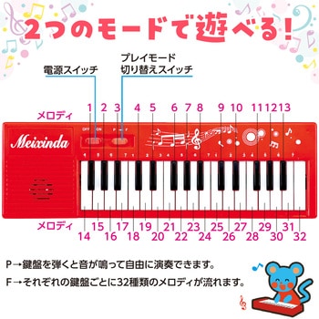 黒鍵+白鍵 全32音 キーボードで演奏デモ曲全32種類収録どの鍵盤を押してもメロディが流れるオートメロディ機能付