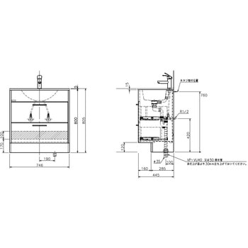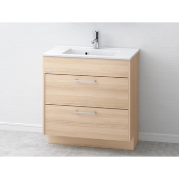 化粧台本体は、二段引き出しタイプで閉まるときの衝撃を和らげるソフトクローズで静かに閉まります。フローティングデザインのようなキャビネットは、洗面空間を広々と感じさせます。