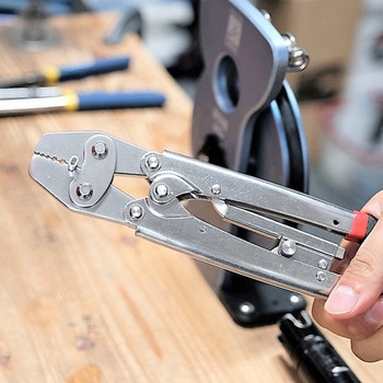 世界で多くのアングラーに使用されているベストセラーのハンドプレスです。リギングの製作にはスリーブの完全な圧着が必要です。その耐久性と品質は世界のトップレベル水準です。120から150号クラスの300~400lb用アルミスリーブでの圧着能力は他と比べ物になりません。このハンドブレスは現在のマーケットにおける最も先進したツールです。ラチェット方式にて圧着するため握力を掛けず楽々と完全な圧着ができる優れものです。他製品と比べるとその違いが分かります。