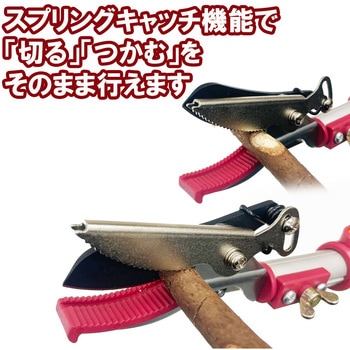3段タイプの収納場所に困らない、コンパクト高枝切鋏です。軽量タイプの3段伸縮高枝切鋏です。スプリングキャッチ機能で「切る」「つかむ」が、部品の付け外し無しで行えます。アンビルタイプ刃採用で15mmまでの生木を強力に切断可能です。