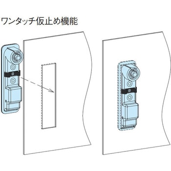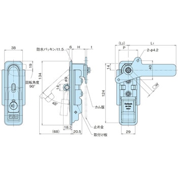 1.南京錠を施錠することによって二重に施錠出来ます。2.中間サイズの筐体の高さに適用したサイズのハンドルです。3.10□・8□の選択が可能です。(止め金取付角穴)4.インジケータが付いていますので、鍵の「開」「閉」状態が一目でわかります。5.「開」→赤、「閉」→緑の表示となっています。6.ワンタッチ仮止め機能もついて、ハンドル取付作業が簡易です。7.左右兼用設計。(調整座金と止め金を裏返すことにより、左右の入れ替えが可能)