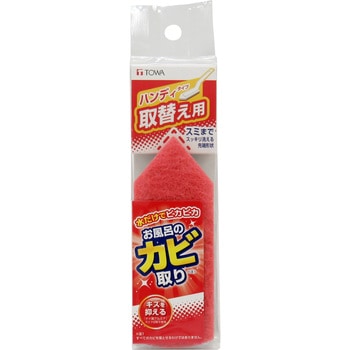この商品は「お風呂のカビ取りハンディ」の取替え用です。微粒子研磨材不織布使用で、水だけでキズを抑えてカビをかき落とします。スミが洗いやすい先端形状です。