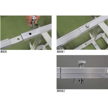 全てのたて込み簡易土留に対応可能。アルミ製で超軽量。(標準高さ2.4mで約12kg)※標準高さは、フック上端までの長さです。連結式により高さは自由に組合わせできます。(連結部材0.7m、1.0m)※連結部材は10 個まで接続して使用可能です。